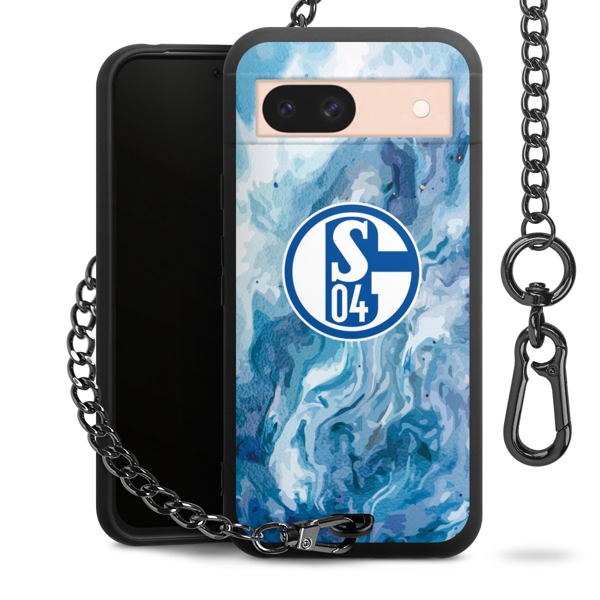 Die mattschwarze Silikon-Handyhülle besteht aus robustem TPU (thermoplastisches Polyurethan). Sie ist flexibel und schützt Dein Smartphone vor Stößen und Kratzern. Die Kette sowie der Karabinerhaken sind aus Metall in Gunmetal-Optik gefertigt. Für dieses Produkt kommen ausschließlich TÜV-geprüfte Materialien zum Einsatz.