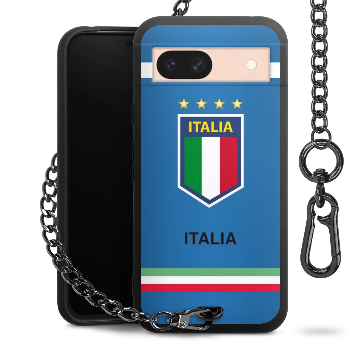 - Mattschwarze Handyhülle mit Metallkette