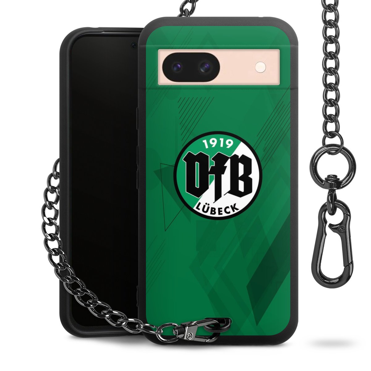 Die mattschwarze Silikon-Handyhülle besteht aus robustem TPU (thermoplastisches Polyurethan). Sie ist flexibel und schützt Dein Smartphone vor Stößen und Kratzern. Die Kette sowie der Karabinerhaken sind aus Metall in Gunmetal-Optik gefertigt. Für dieses Produkt kommen ausschließlich TÜV-geprüfte Materialien zum Einsatz.
