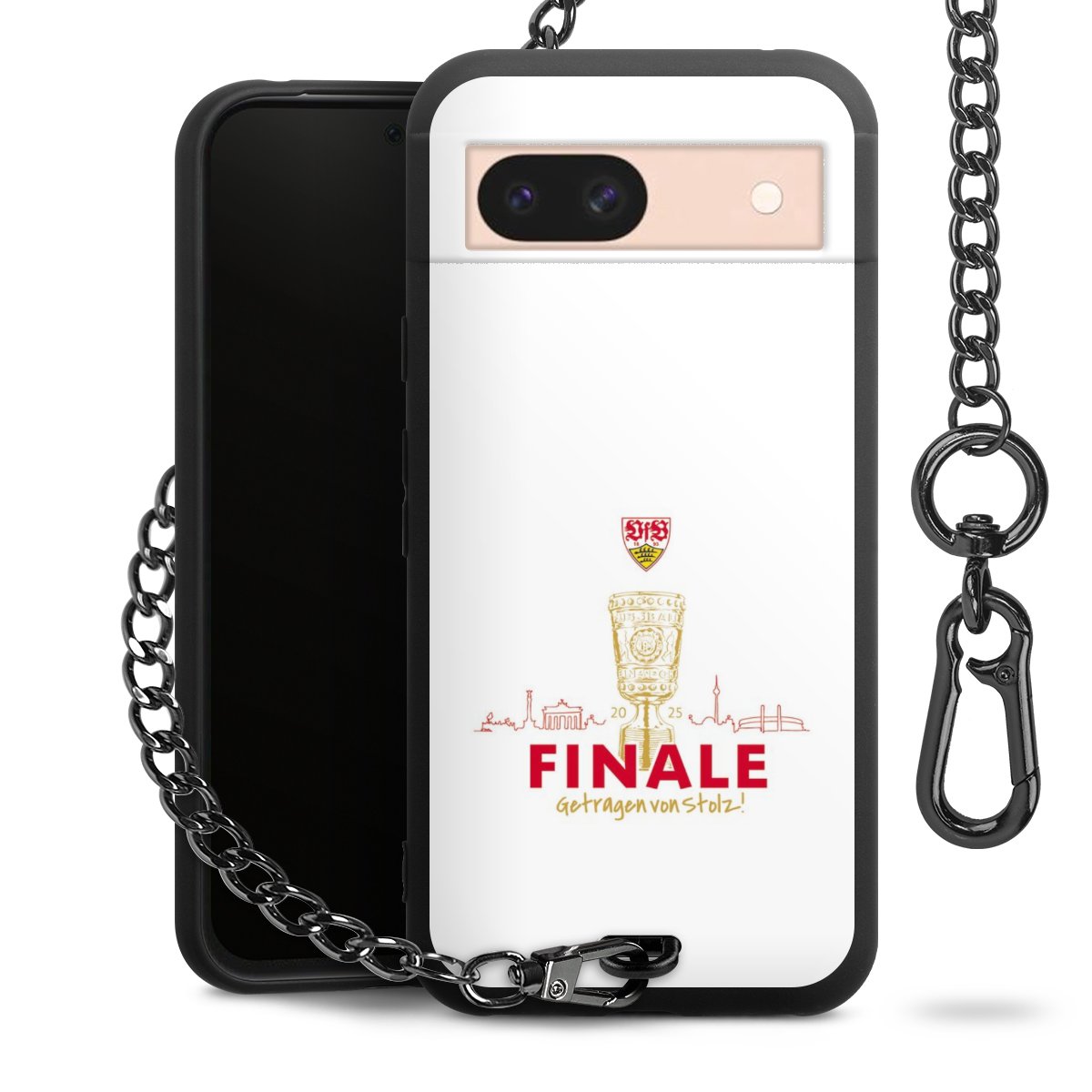 Die mattschwarze Silikon-Handyhülle besteht aus robustem TPU (thermoplastisches Polyurethan). Sie ist flexibel und schützt Dein Smartphone vor Stößen und Kratzern. Die Kette sowie der Karabinerhaken sind aus Metall in Gunmetal-Optik gefertigt. Für dieses Produkt kommen ausschließlich TÜV-geprüfte Materialien zum Einsatz.