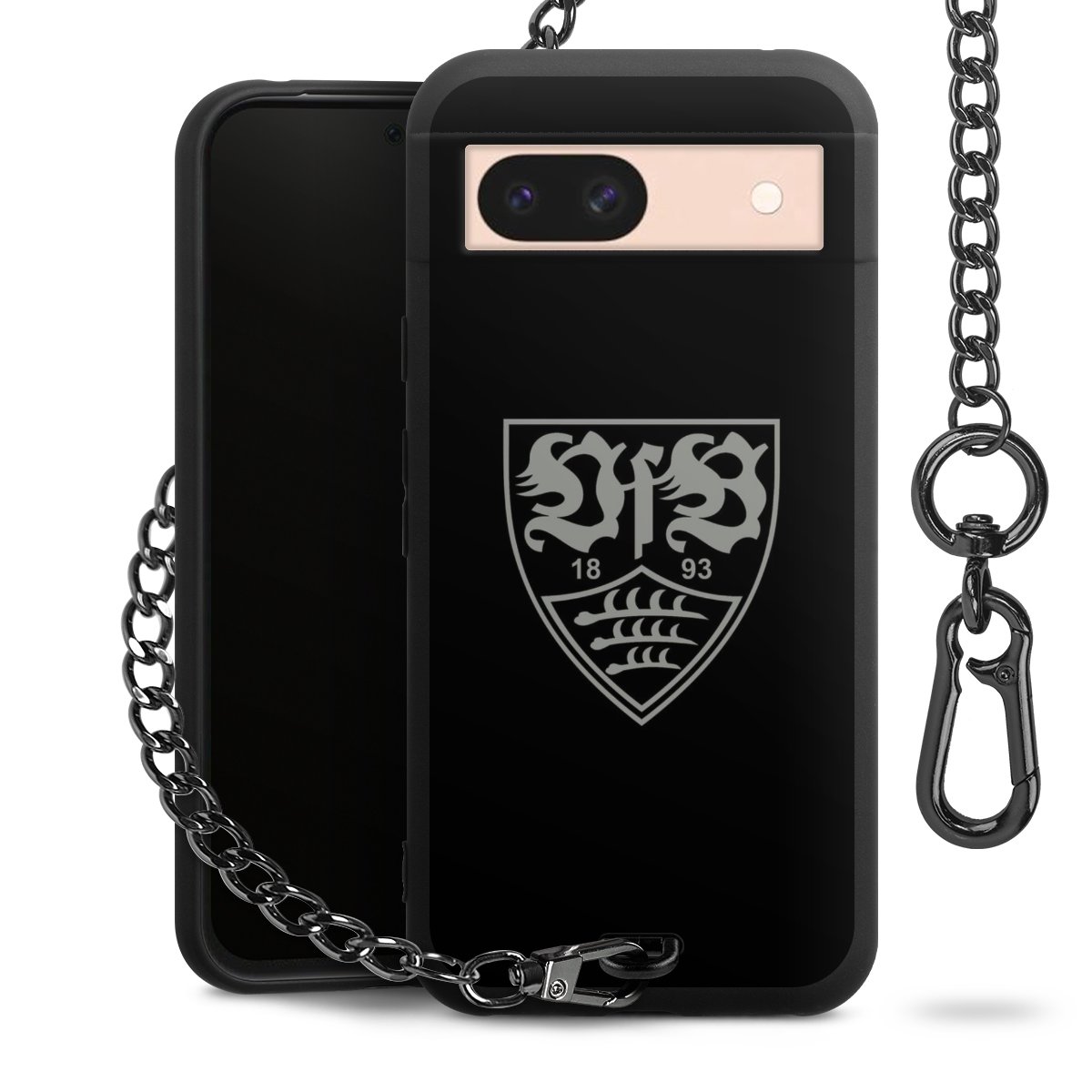 Die mattschwarze Silikon-Handyhülle besteht aus robustem TPU (thermoplastisches Polyurethan). Sie ist flexibel und schützt Dein Smartphone vor Stößen und Kratzern. Die Kette sowie der Karabinerhaken sind aus Metall in Gunmetal-Optik gefertigt. Für dieses Produkt kommen ausschließlich TÜV-geprüfte Materialien zum Einsatz.