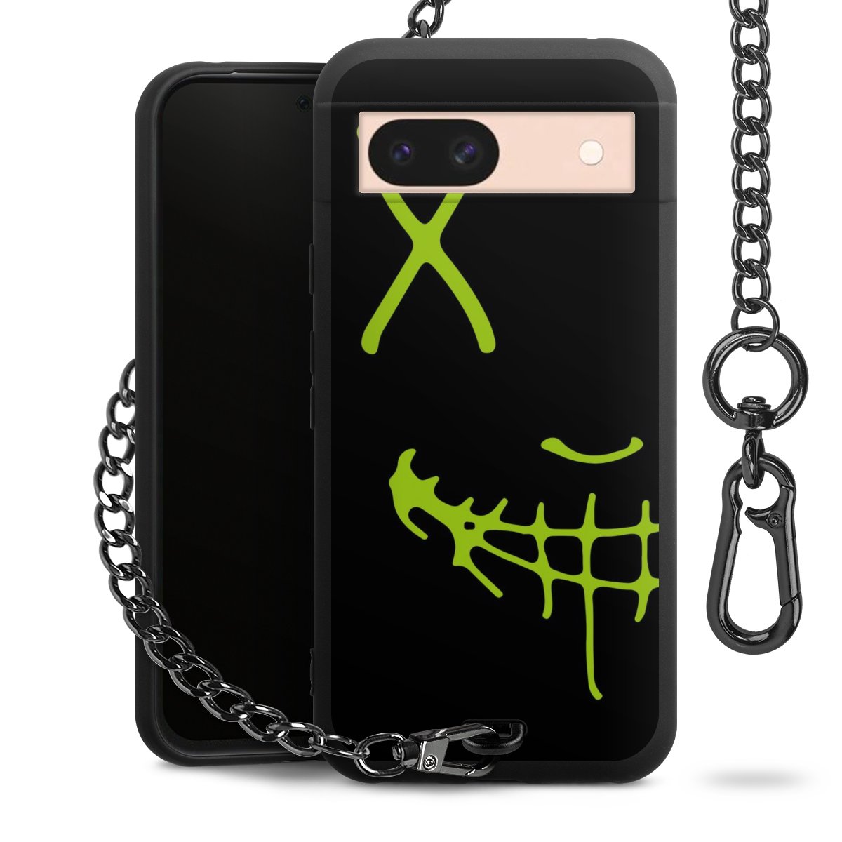Die mattschwarze Silikon-Handyhülle besteht aus robustem TPU (thermoplastisches Polyurethan). Sie ist flexibel und schützt Dein Smartphone vor Stößen und Kratzern. Die Kette sowie der Karabinerhaken sind aus Metall in Gunmetal-Optik gefertigt. Für dieses Produkt kommen ausschließlich TÜV-geprüfte Materialien zum Einsatz.