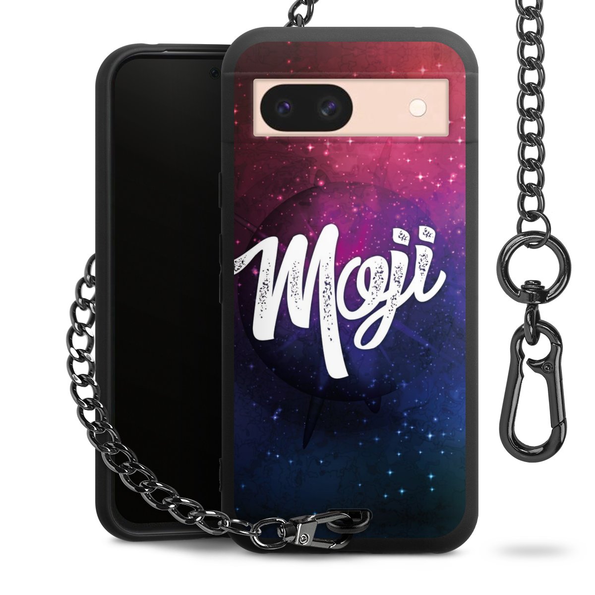 • Mattschwarze Handyhülle mit Metallkette