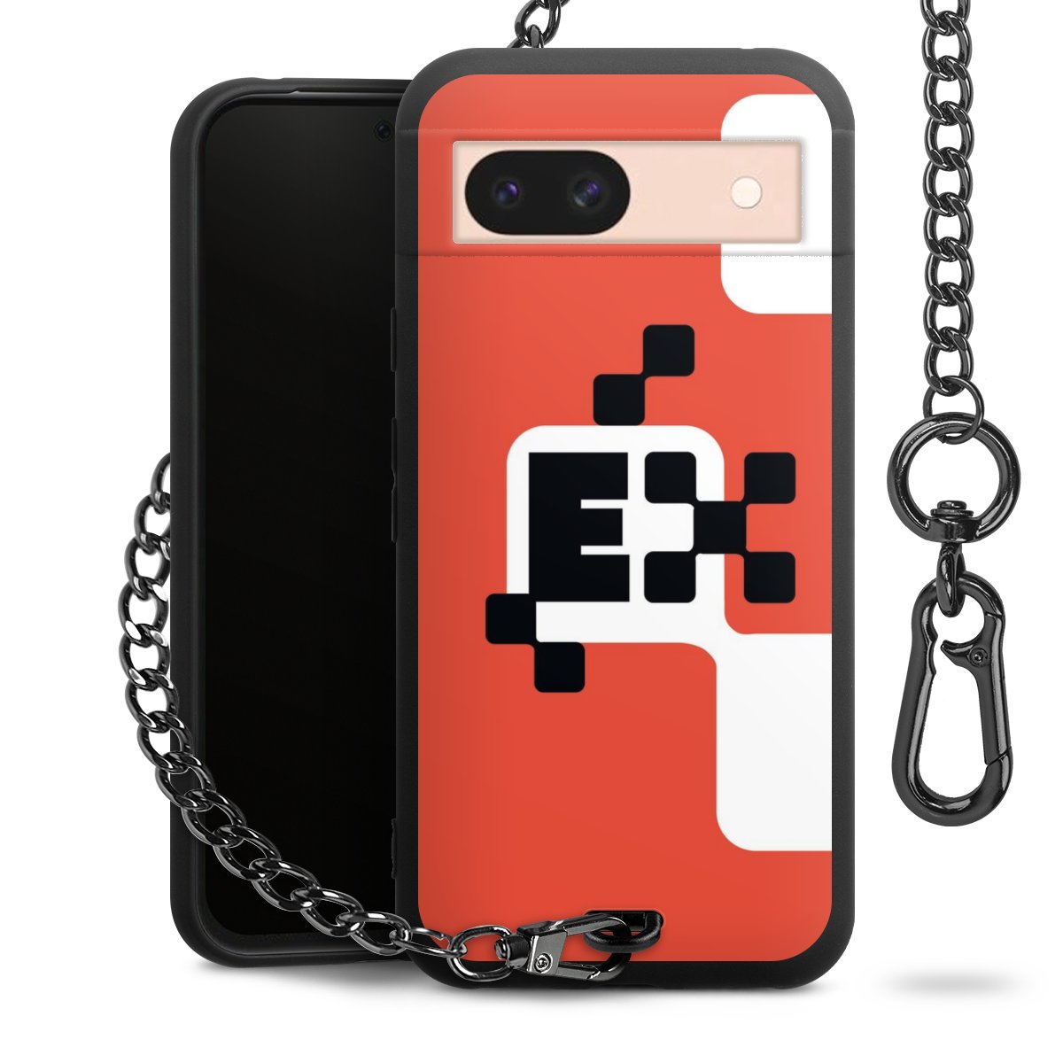 - Mattschwarze Handyhülle mit Metallkette