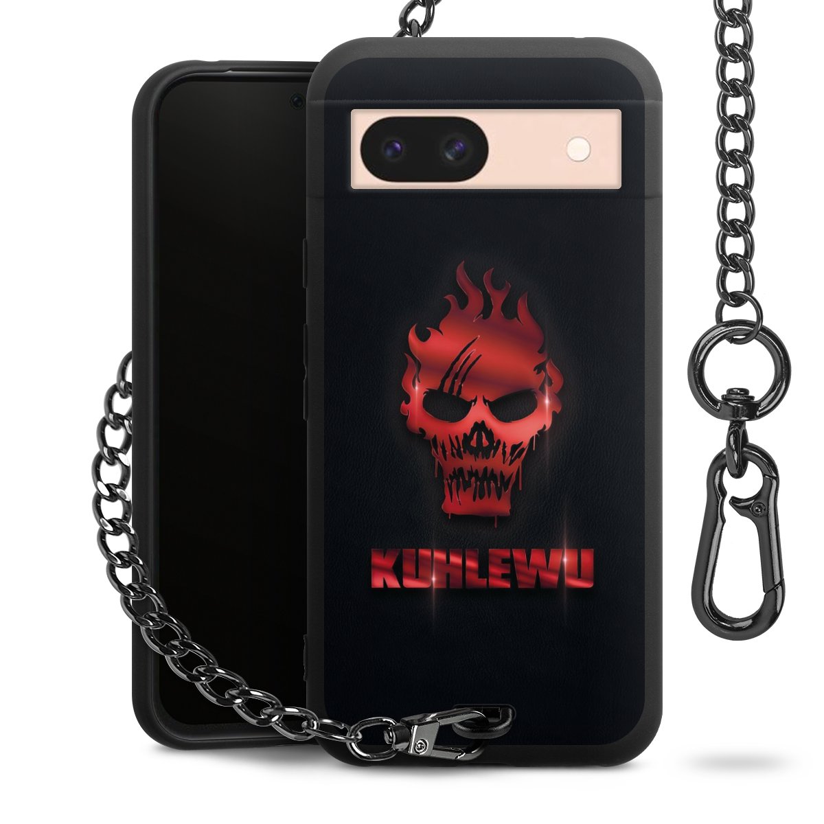 Die mattschwarze Silikon-Handyhülle besteht aus robustem TPU (thermoplastisches Polyurethan). Sie ist flexibel und schützt Dein Smartphone vor Stößen und Kratzern. Die Kette sowie der Karabinerhaken sind aus Metall in Gunmetal-Optik gefertigt. Für dieses Produkt kommen ausschließlich TÜV-geprüfte Materialien zum Einsatz.