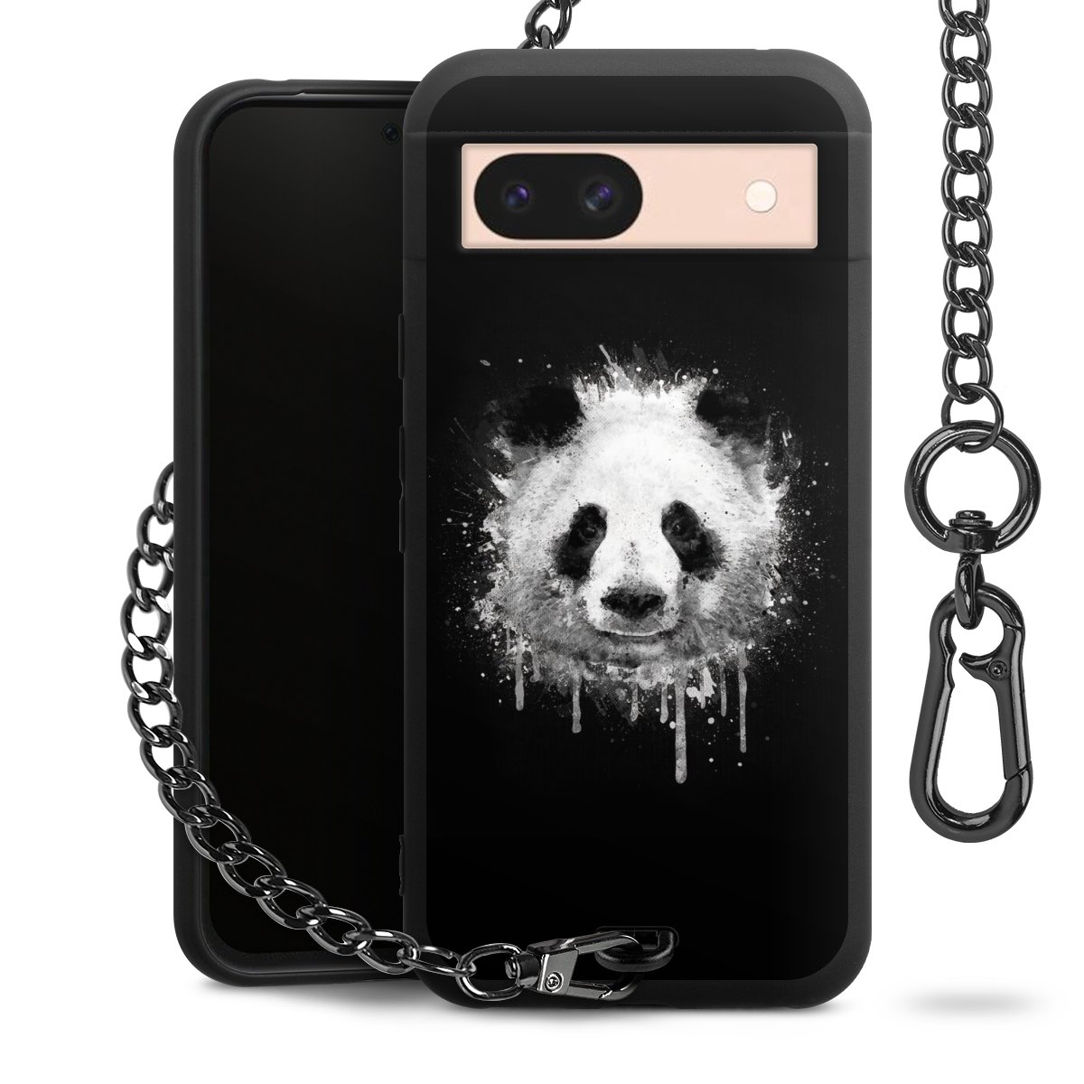 • Mattschwarze Handyhülle mit Metallkette
