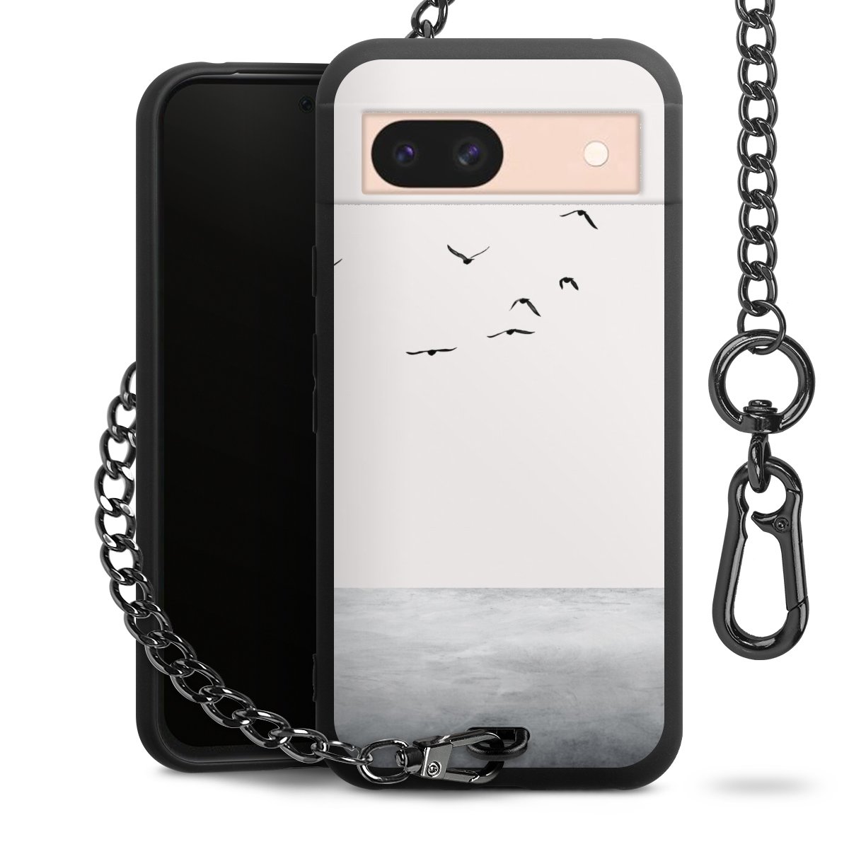 • Mattschwarze Handyhülle mit Metallkette
