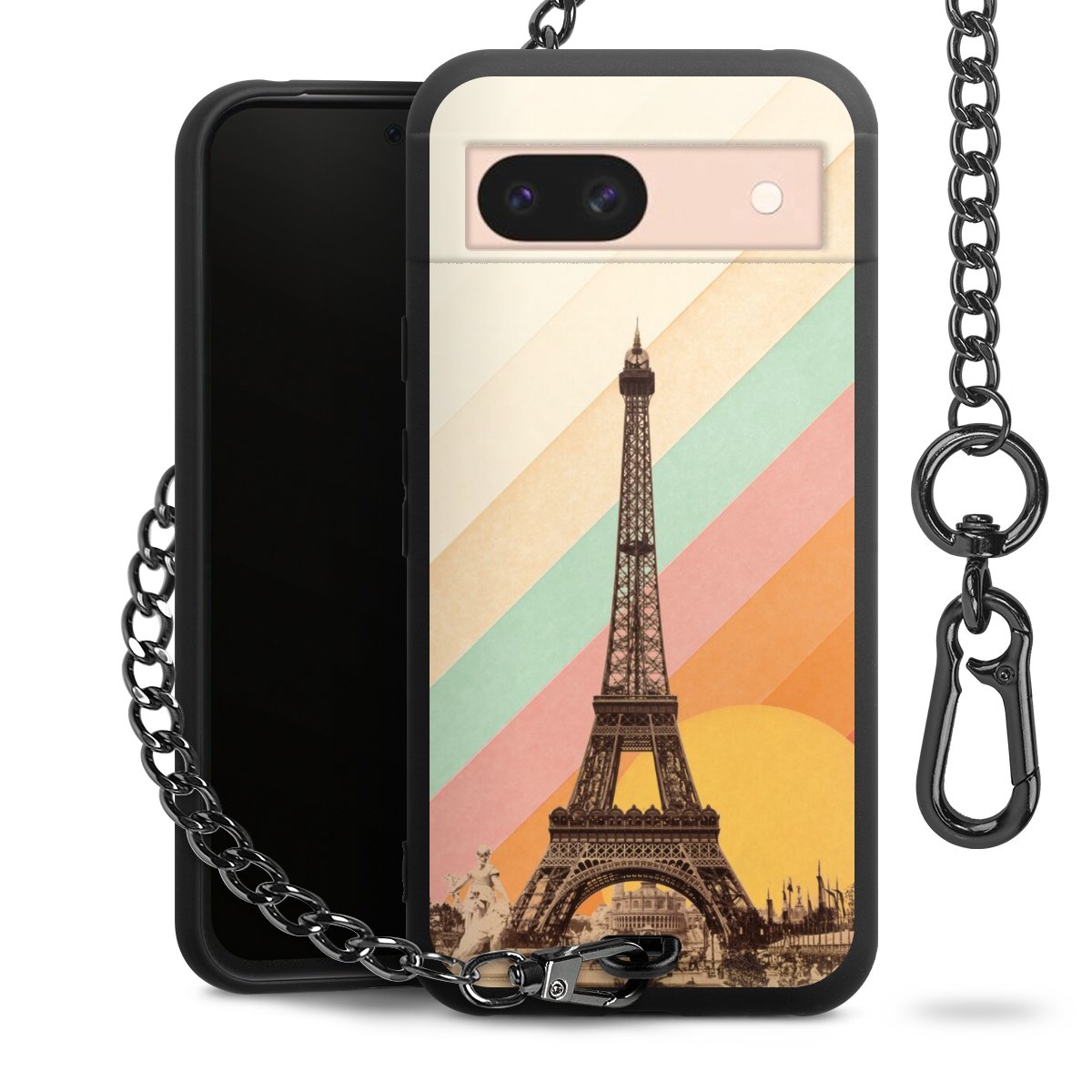 Die mattschwarze Silikon-Handyhülle besteht aus robustem TPU (thermoplastisches Polyurethan). Sie ist flexibel und schützt Dein Smartphone vor Stößen und Kratzern. Die Kette sowie der Karabinerhaken sind aus Metall in Gunmetal-Optik gefertigt. Für dieses Produkt kommen ausschließlich TÜV-geprüfte Materialien zum Einsatz.