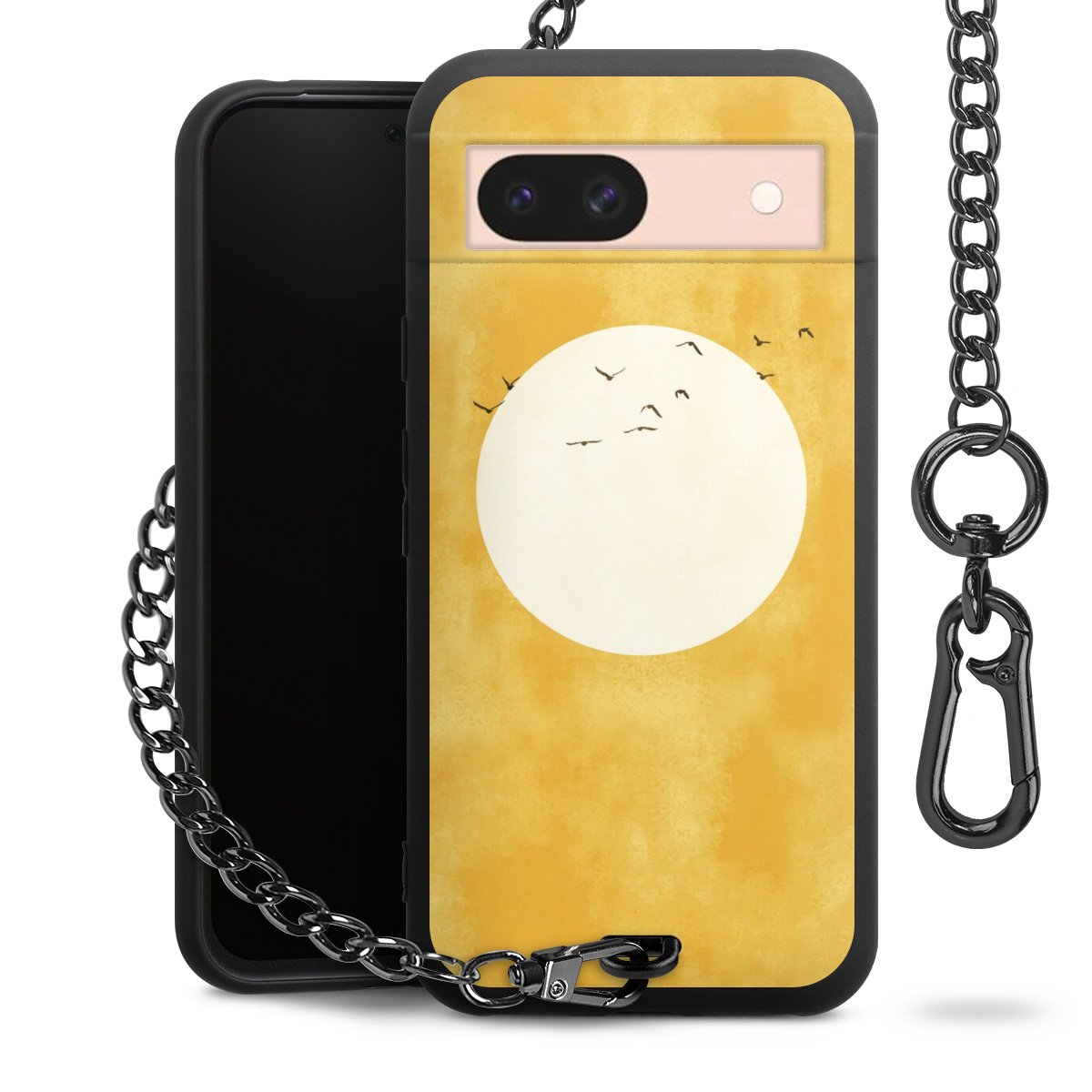 • Mattschwarze Handyhülle mit Metallkette