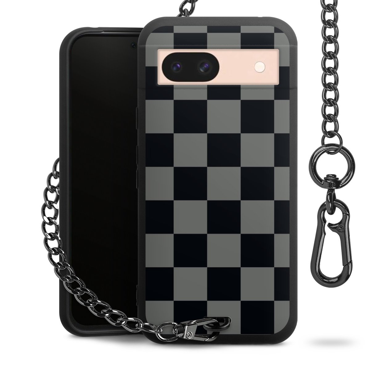 - Mattschwarze Handyhülle mit Metallkette