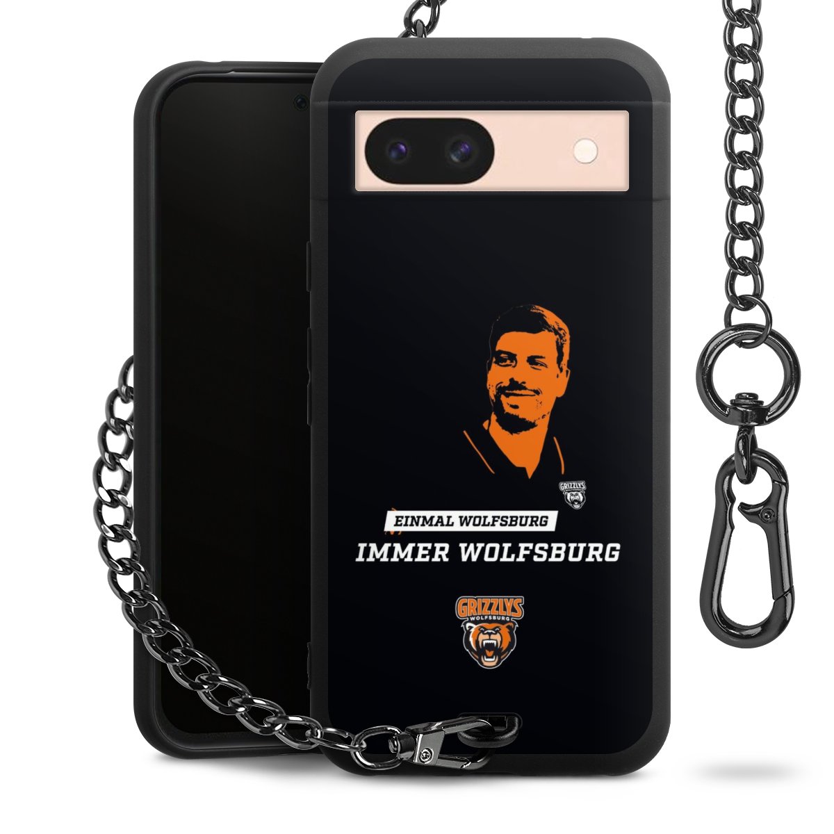 Die mattschwarze Silikon-Handyhülle besteht aus robustem TPU (thermoplastisches Polyurethan). Sie ist flexibel und schützt Dein Smartphone vor Stößen und Kratzern. Die Kette sowie der Karabinerhaken sind aus Metall in Gunmetal-Optik gefertigt. Für dieses Produkt kommen ausschließlich TÜV-geprüfte Materialien zum Einsatz.