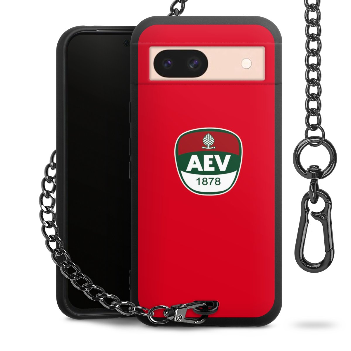 Die mattschwarze Silikon-Handyhülle besteht aus robustem TPU (thermoplastisches Polyurethan). Sie ist flexibel und schützt Dein Smartphone vor Stößen und Kratzern. Die Kette sowie der Karabinerhaken sind aus Metall in Gunmetal-Optik gefertigt. Für dieses Produkt kommen ausschließlich TÜV-geprüfte Materialien zum Einsatz.