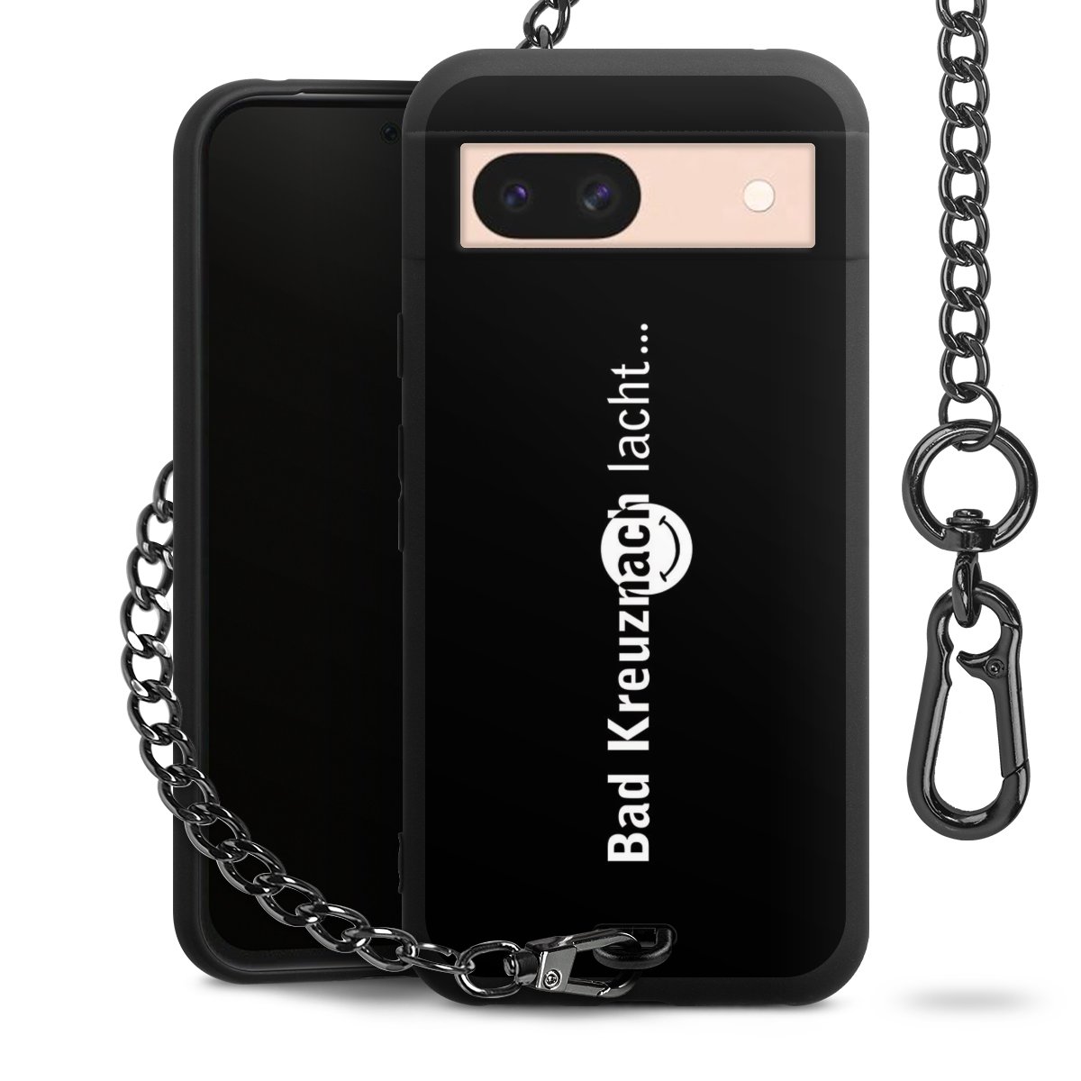 Die mattschwarze Silikon-Handyhülle besteht aus robustem TPU (thermoplastisches Polyurethan). Sie ist flexibel und schützt Dein Smartphone vor Stößen und Kratzern. Die Kette sowie der Karabinerhaken sind aus Metall in Gunmetal-Optik gefertigt. Für dieses Produkt kommen ausschließlich TÜV-geprüfte Materialien zum Einsatz.