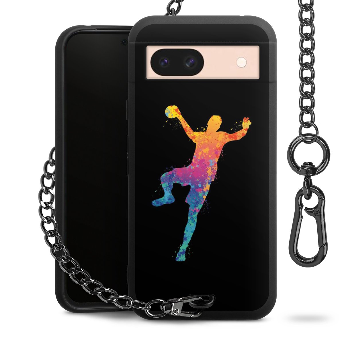 Die mattschwarze Silikon-Handyhülle besteht aus robustem TPU (thermoplastisches Polyurethan). Sie ist flexibel und schützt Dein Smartphone vor Stößen und Kratzern. Die Kette sowie der Karabinerhaken sind aus Metall in Gunmetal-Optik gefertigt. Für dieses Produkt kommen ausschließlich TÜV-geprüfte Materialien zum Einsatz.