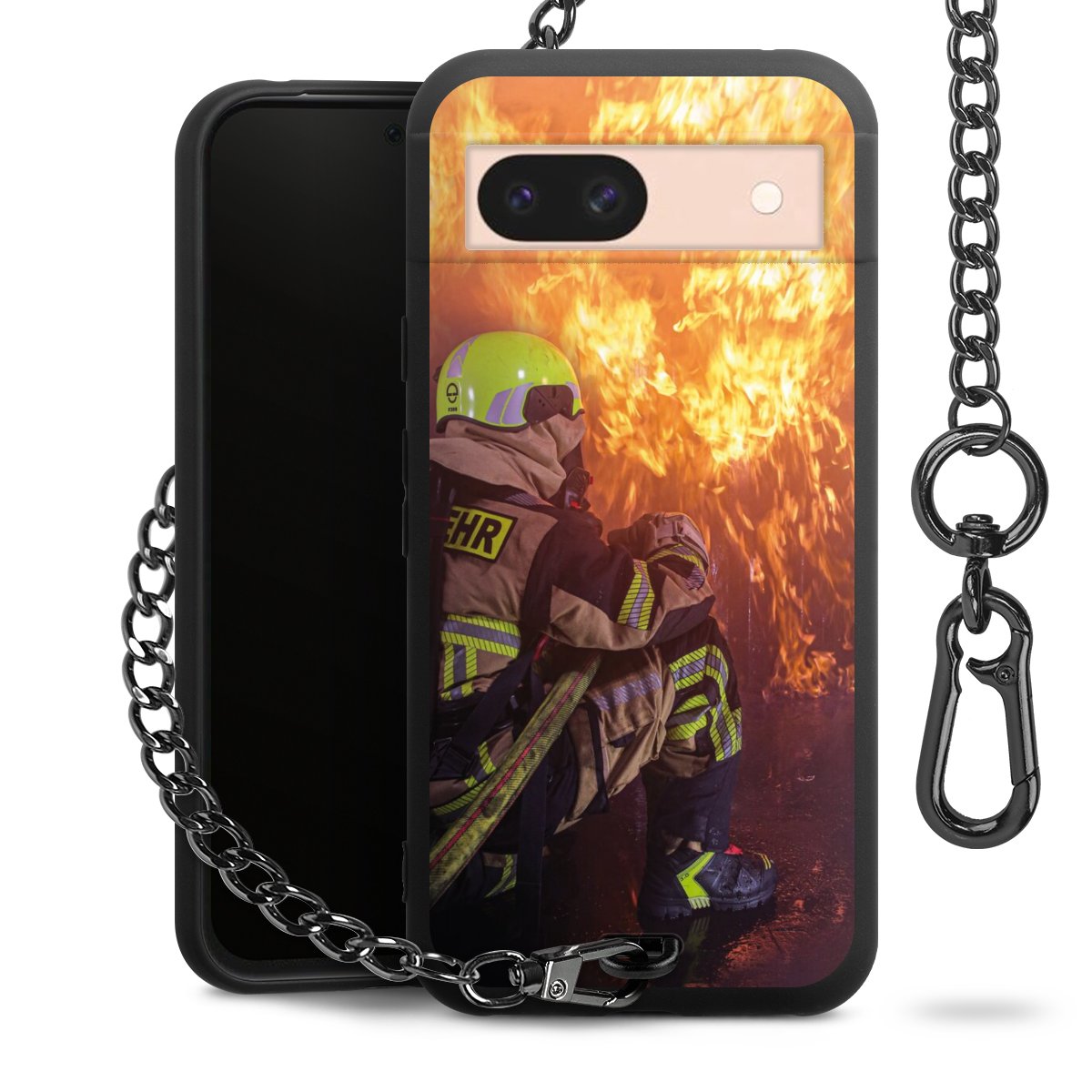 Die mattschwarze Silikon-Handyhülle besteht aus robustem TPU (thermoplastisches Polyurethan). Sie ist flexibel und schützt Dein Smartphone vor Stößen und Kratzern. Die Kette sowie der Karabinerhaken sind aus Metall in Gunmetal-Optik gefertigt. Für dieses Produkt kommen ausschließlich TÜV-geprüfte Materialien zum Einsatz.