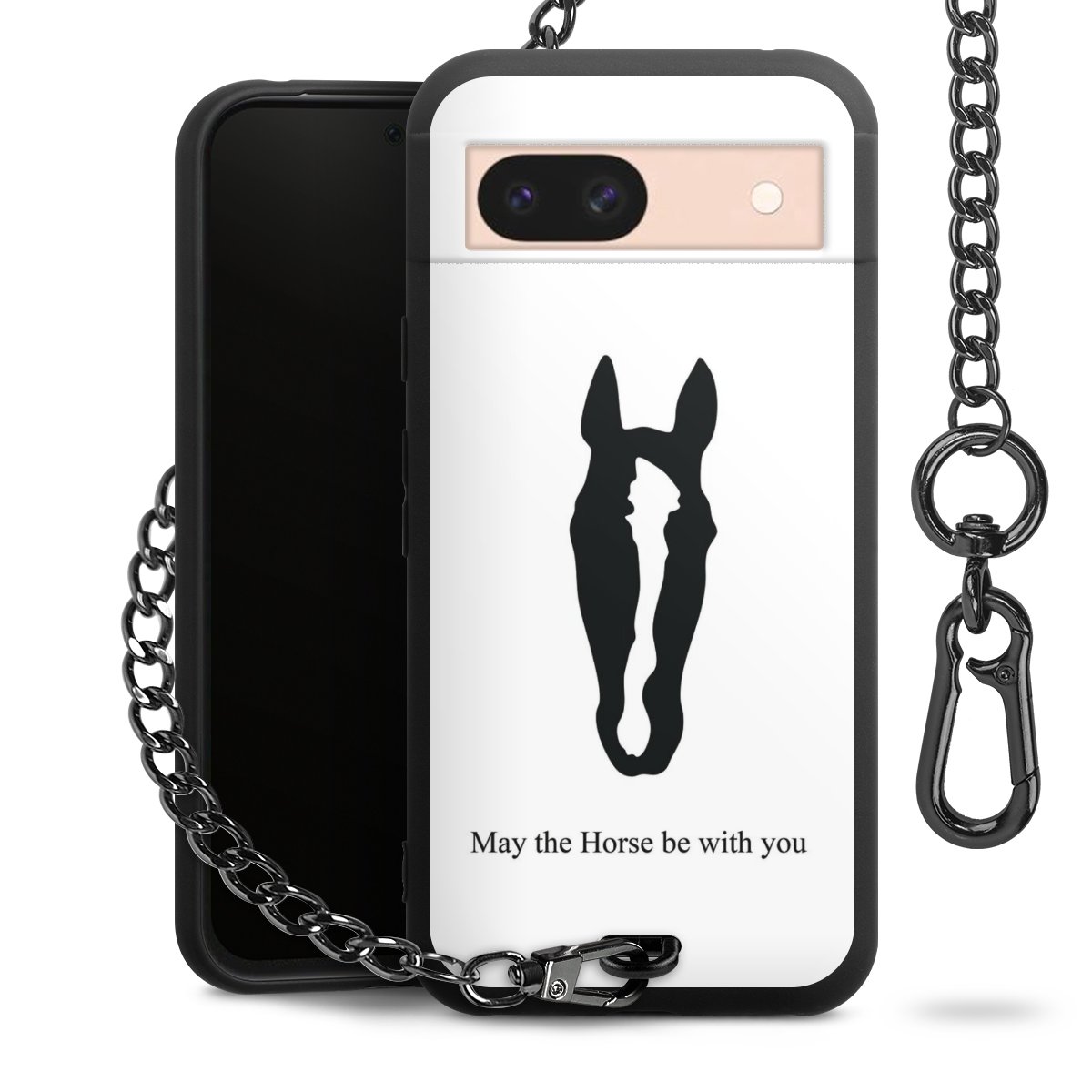 Die mattschwarze Silikon-Handyhülle besteht aus robustem TPU (thermoplastisches Polyurethan). Sie ist flexibel und schützt Dein Smartphone vor Stößen und Kratzern. Die Kette sowie der Karabinerhaken sind aus Metall in Gunmetal-Optik gefertigt. Für dieses Produkt kommen ausschließlich TÜV-geprüfte Materialien zum Einsatz.