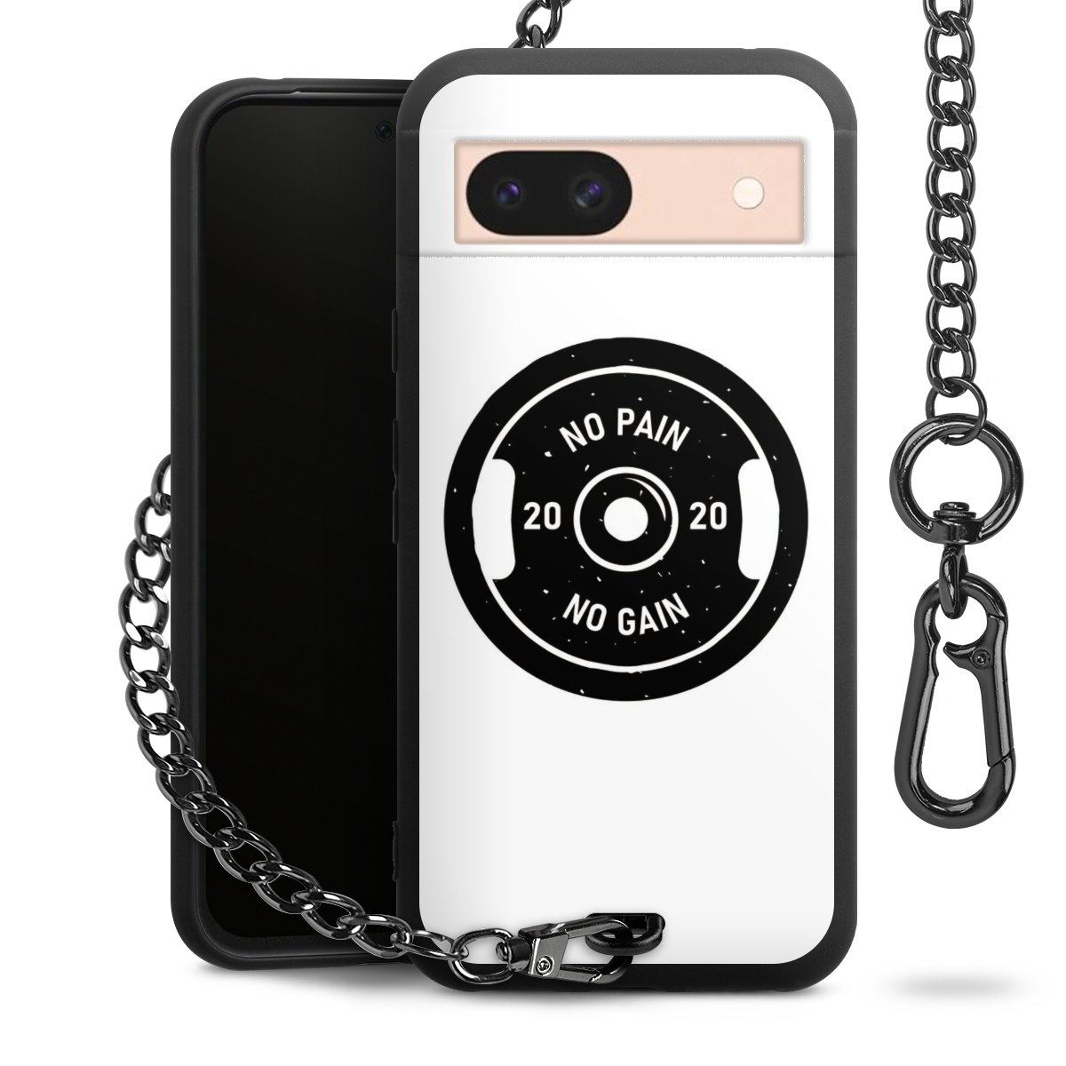 Die mattschwarze Silikon-Handyhülle besteht aus robustem TPU (thermoplastisches Polyurethan). Sie ist flexibel und schützt Dein Smartphone vor Stößen und Kratzern. Die Kette sowie der Karabinerhaken sind aus Metall in Gunmetal-Optik gefertigt. Für dieses Produkt kommen ausschließlich TÜV-geprüfte Materialien zum Einsatz.