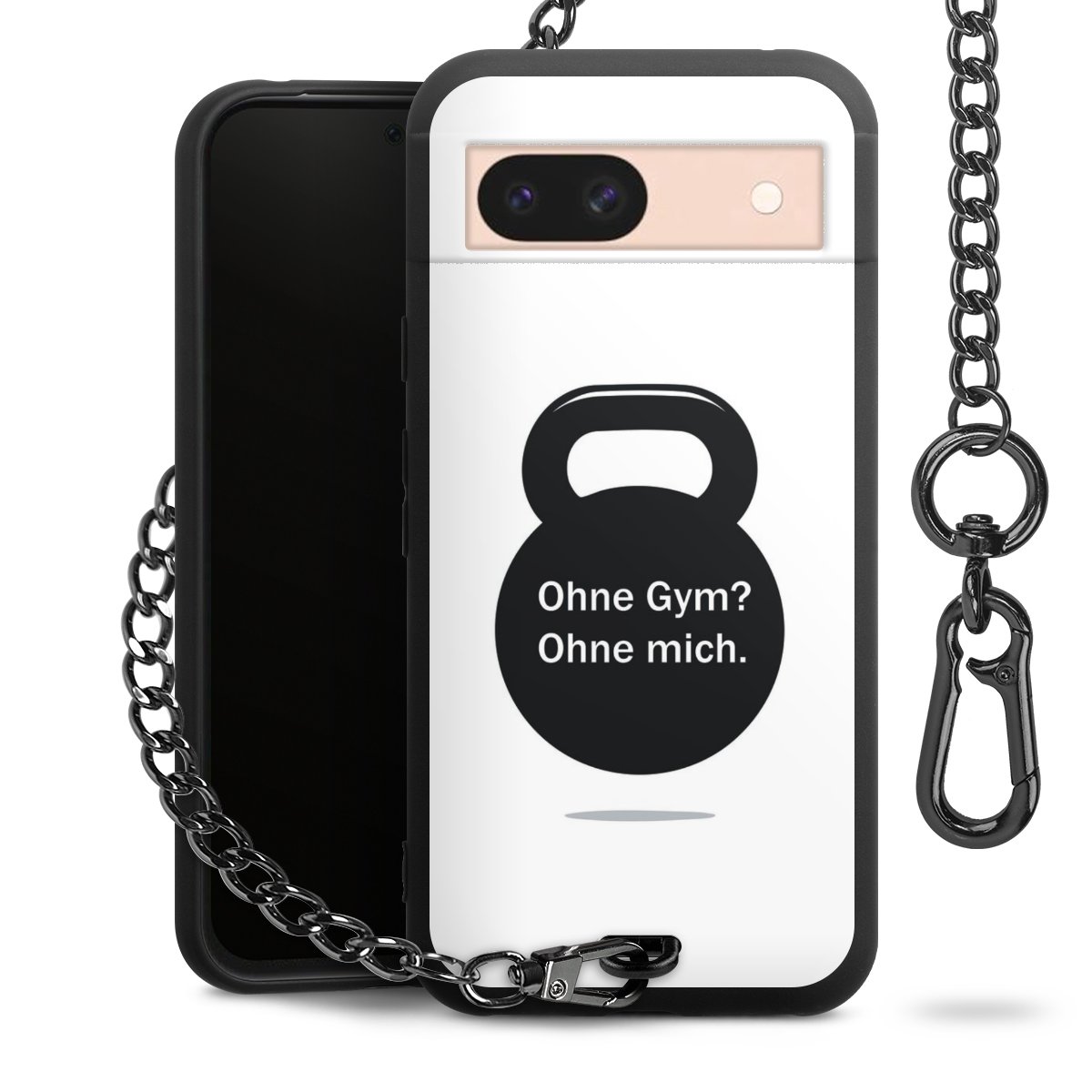 Die mattschwarze Silikon-Handyhülle besteht aus robustem TPU (thermoplastisches Polyurethan). Sie ist flexibel und schützt Dein Smartphone vor Stößen und Kratzern. Die Kette sowie der Karabinerhaken sind aus Metall in Gunmetal-Optik gefertigt. Für dieses Produkt kommen ausschließlich TÜV-geprüfte Materialien zum Einsatz.