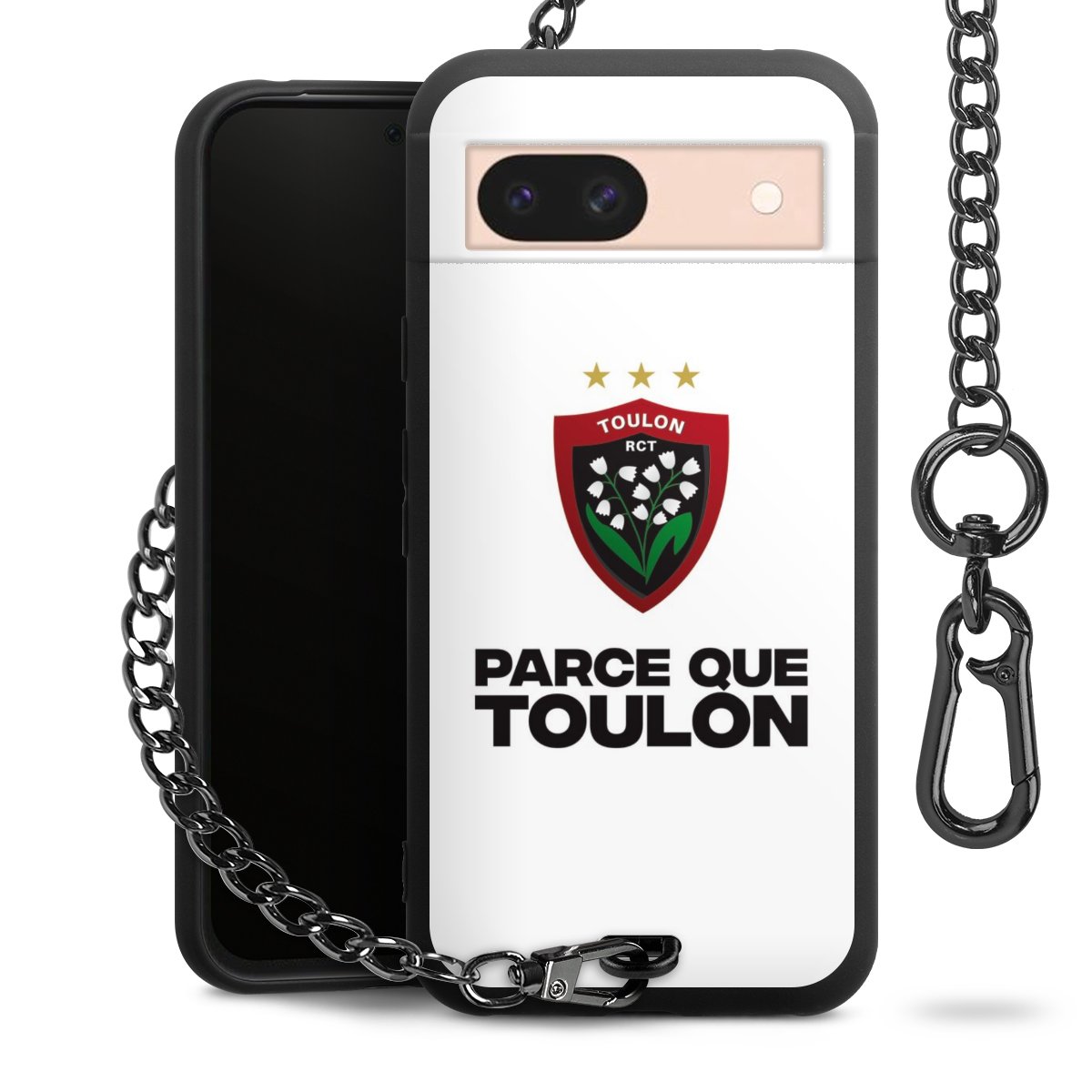Die mattschwarze Silikon-Handyhülle besteht aus robustem TPU (thermoplastisches Polyurethan). Sie ist flexibel und schützt Dein Smartphone vor Stößen und Kratzern. Die Kette sowie der Karabinerhaken sind aus Metall in Gunmetal-Optik gefertigt. Für dieses Produkt kommen ausschließlich TÜV-geprüfte Materialien zum Einsatz.