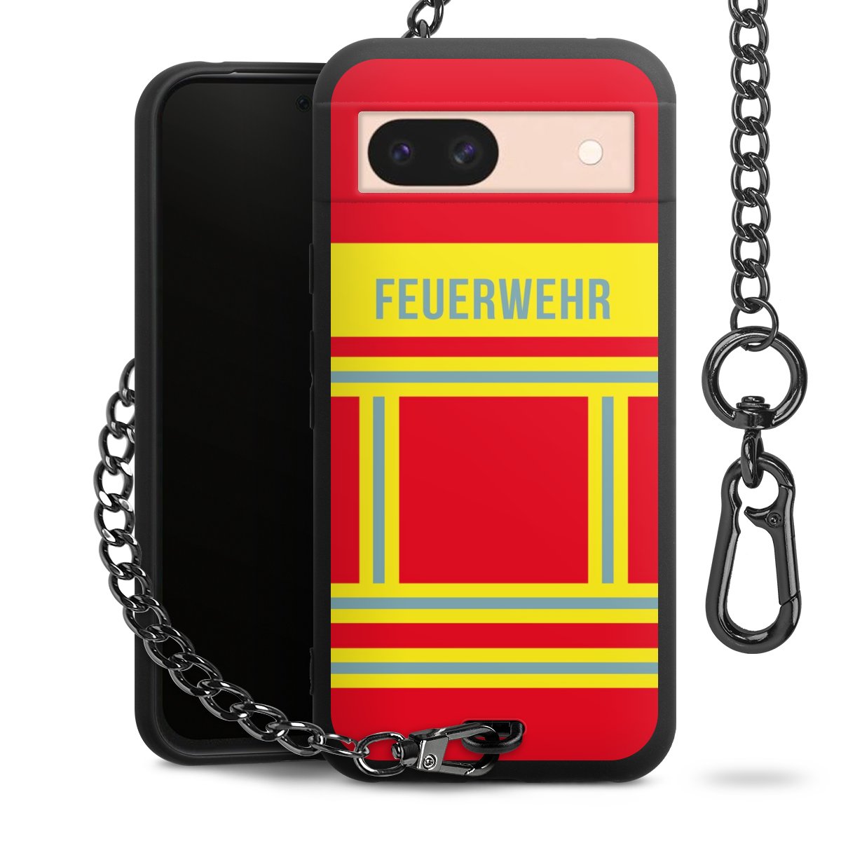 - Mattschwarze Handyhülle mit Metallkette