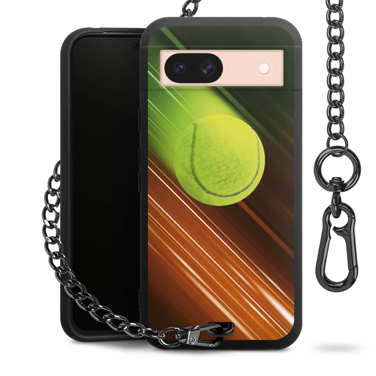 - Mattschwarze Handyhülle mit Metallkette