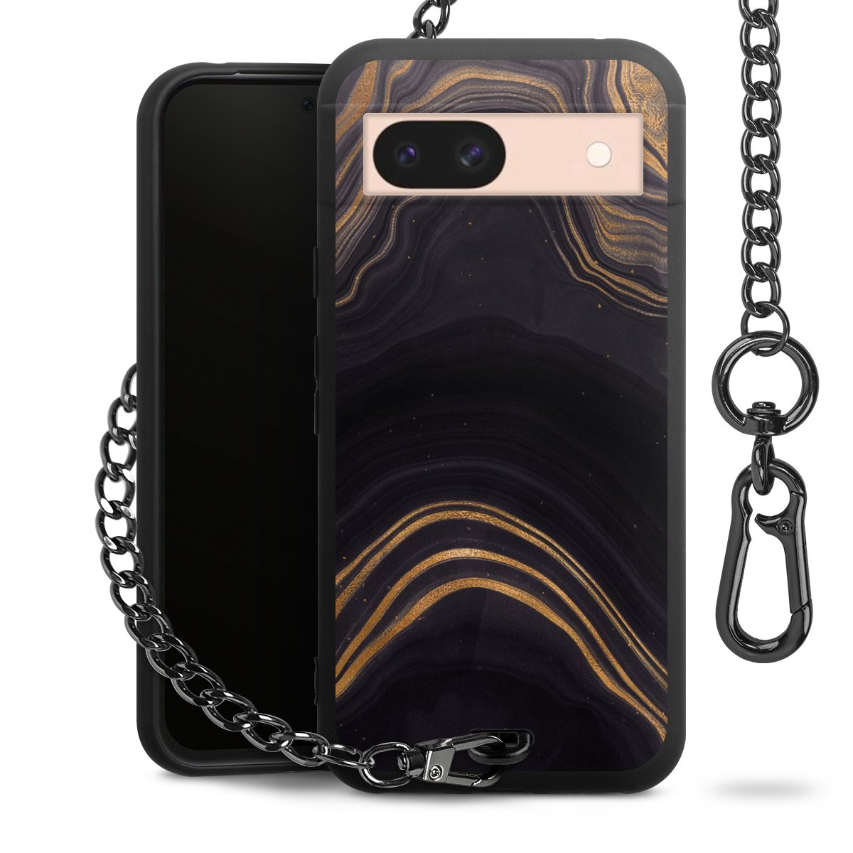• Mattschwarze Handyhülle mit Metallkette