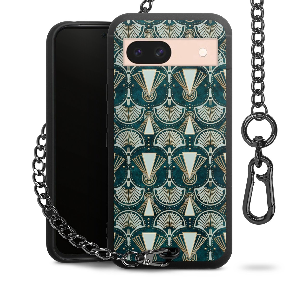• Mattschwarze Handyhülle mit Metallkette