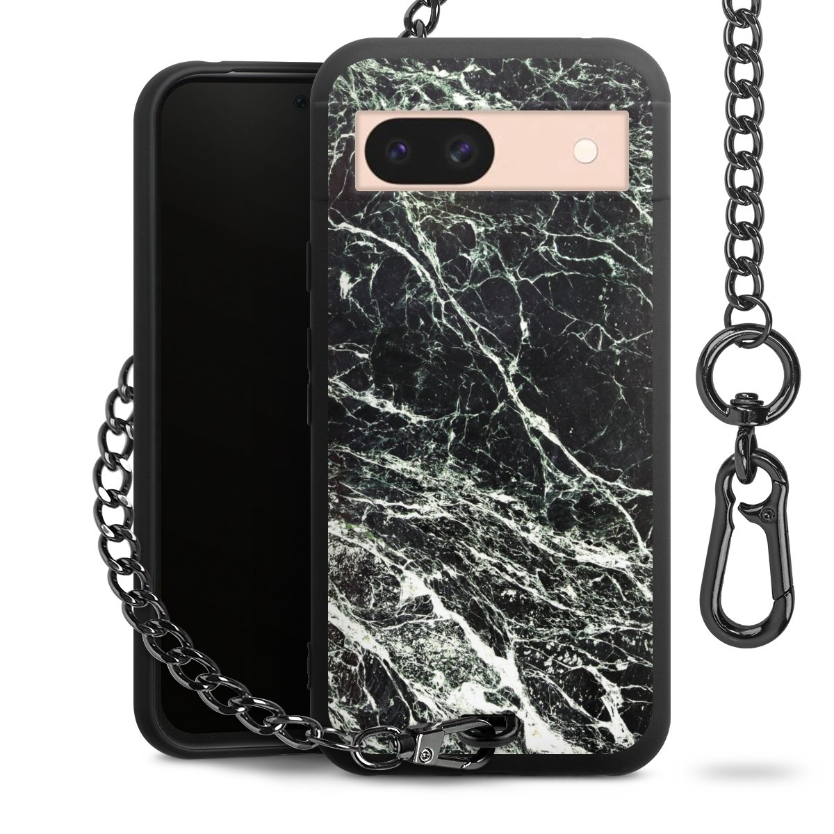 - Mattschwarze Handyhülle mit Metallkette