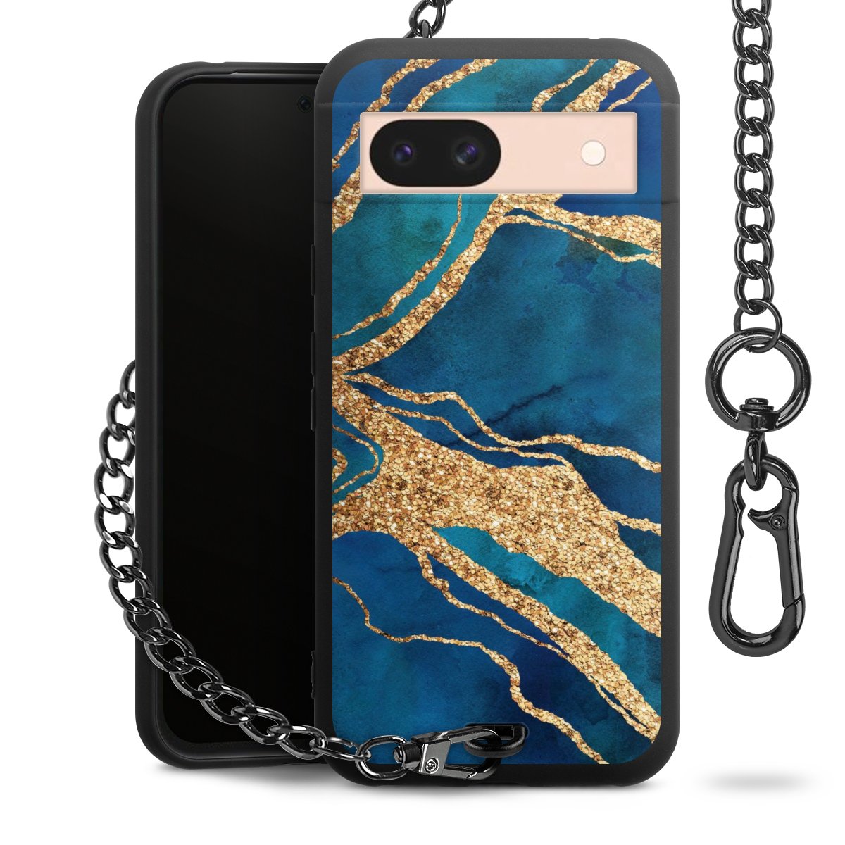 • Mattschwarze Handyhülle mit Metallkette