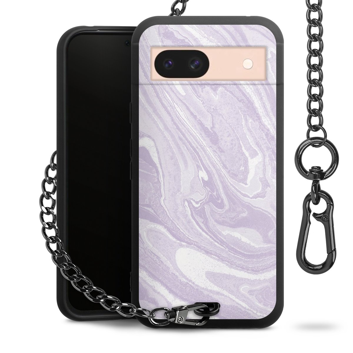 • Mattschwarze Handyhülle mit Metallkette