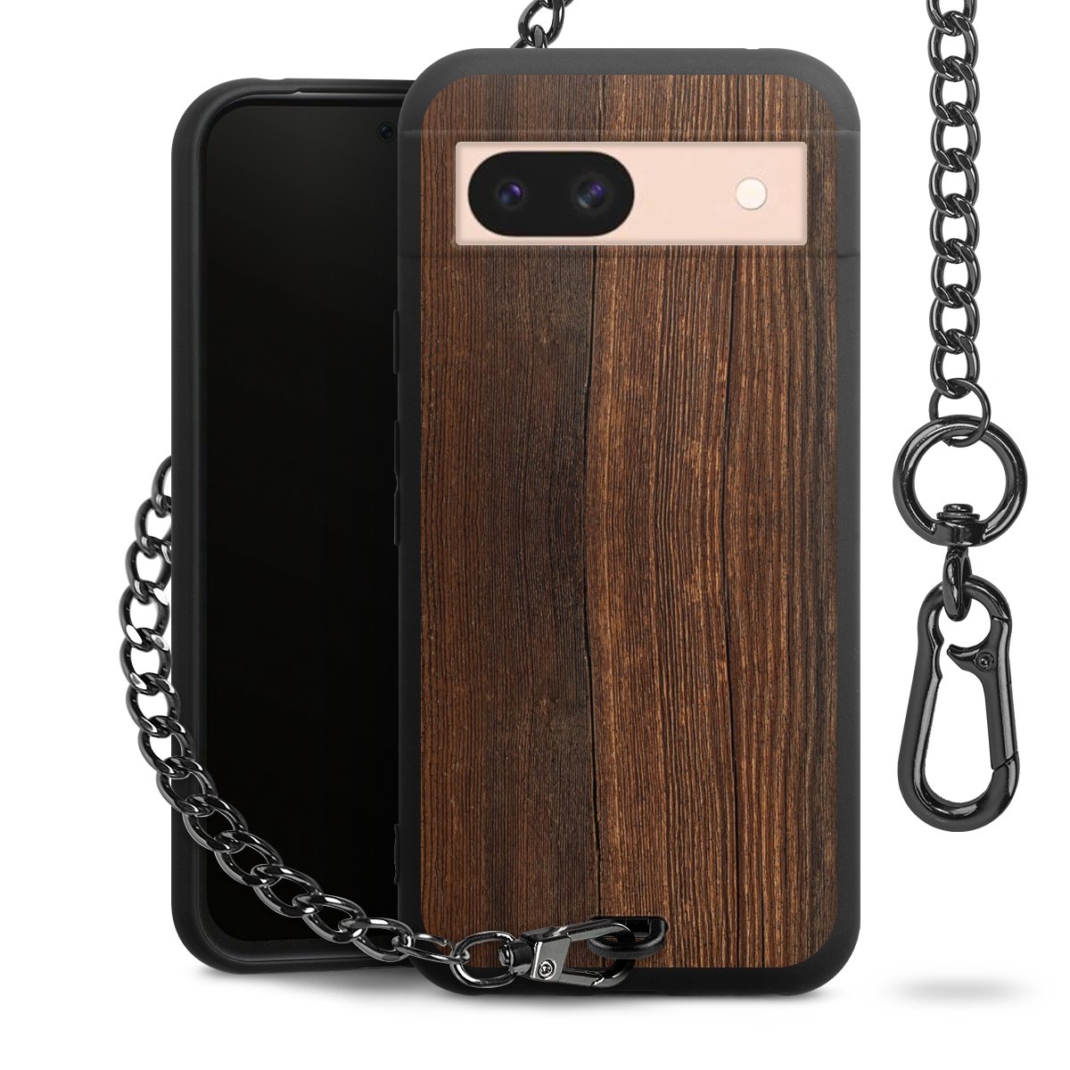 - Mattschwarze Handyhülle mit Metallkette