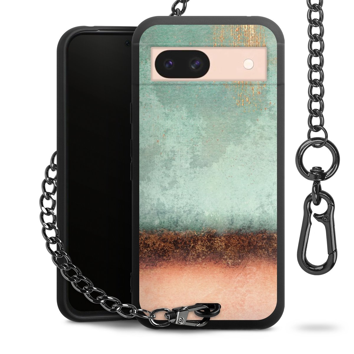 • Mattschwarze Handyhülle mit Metallkette