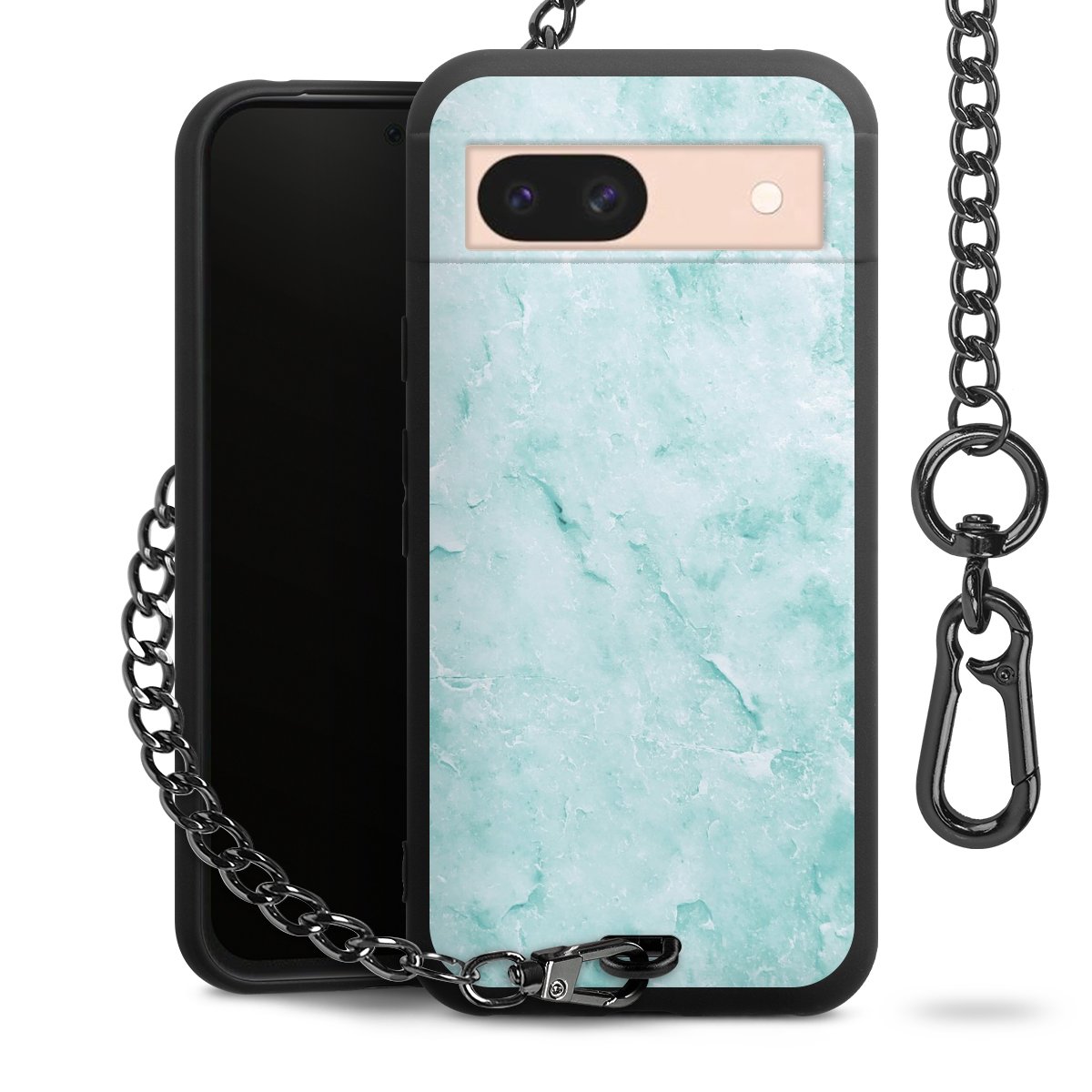 Die mattschwarze Silikon-Handyhülle besteht aus robustem TPU (thermoplastisches Polyurethan). Sie ist flexibel und schützt Dein Smartphone vor Stößen und Kratzern. Die Kette sowie der Karabinerhaken sind aus Metall in Gunmetal-Optik gefertigt. Für dieses Produkt kommen ausschließlich TÜV-geprüfte Materialien zum Einsatz.