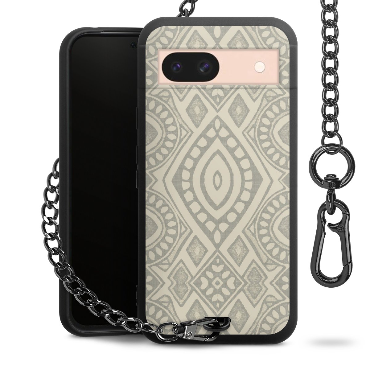 • Mattschwarze Handyhülle mit Metallkette