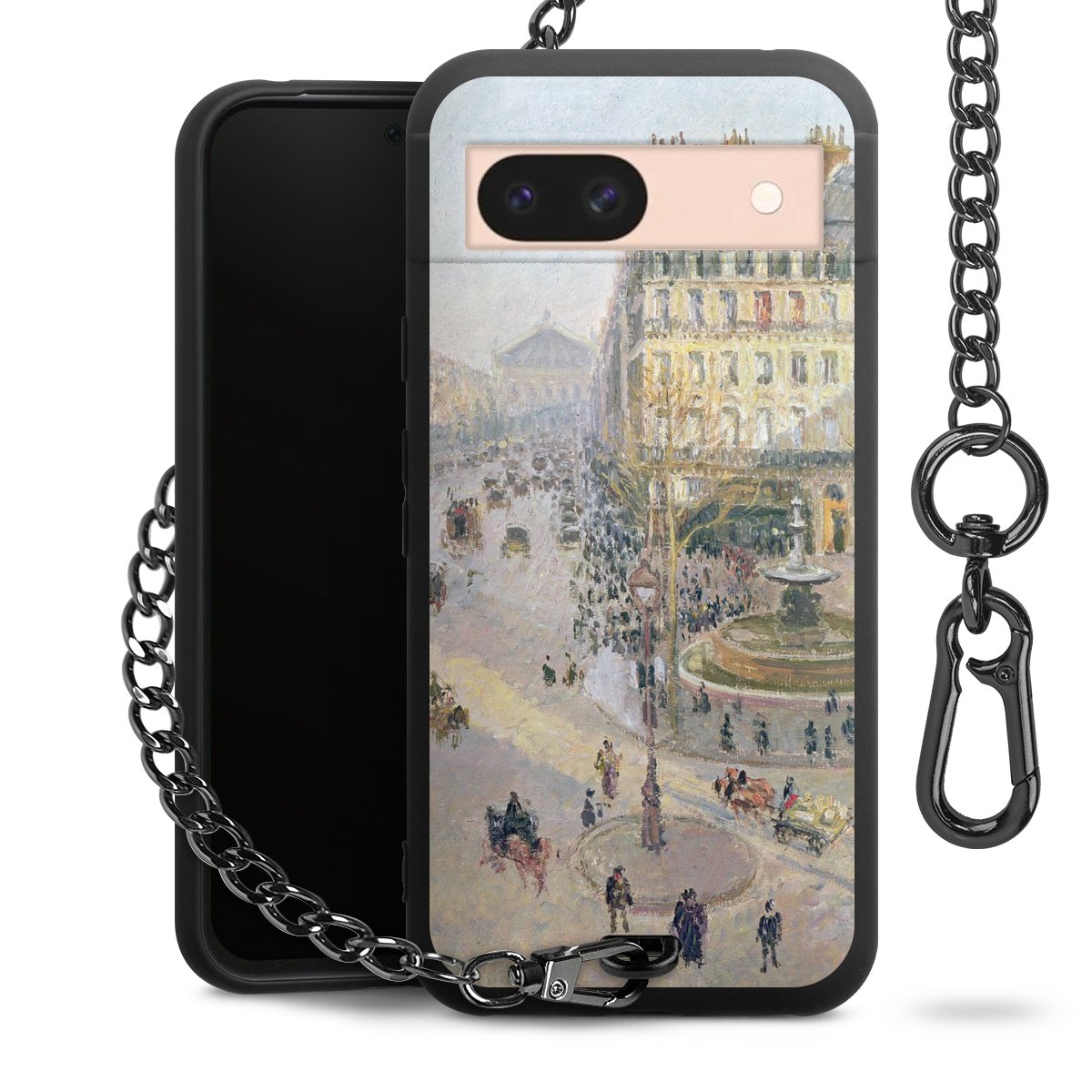 • Mattschwarze Handyhülle mit Metallkette