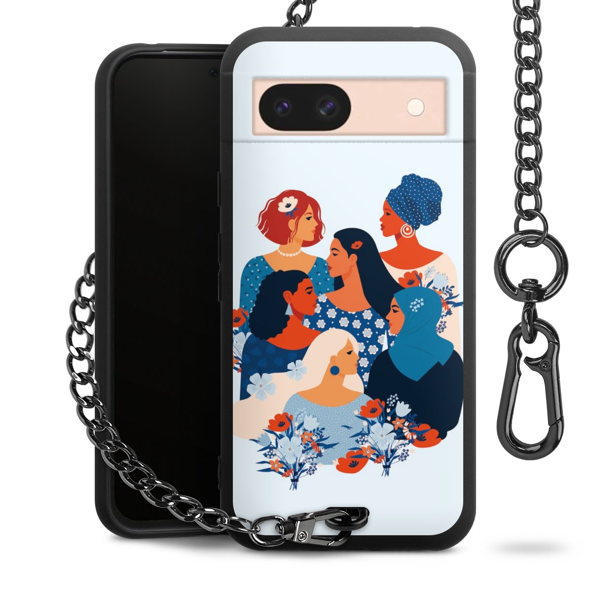- Mattschwarze Handyhülle mit Metallkette
