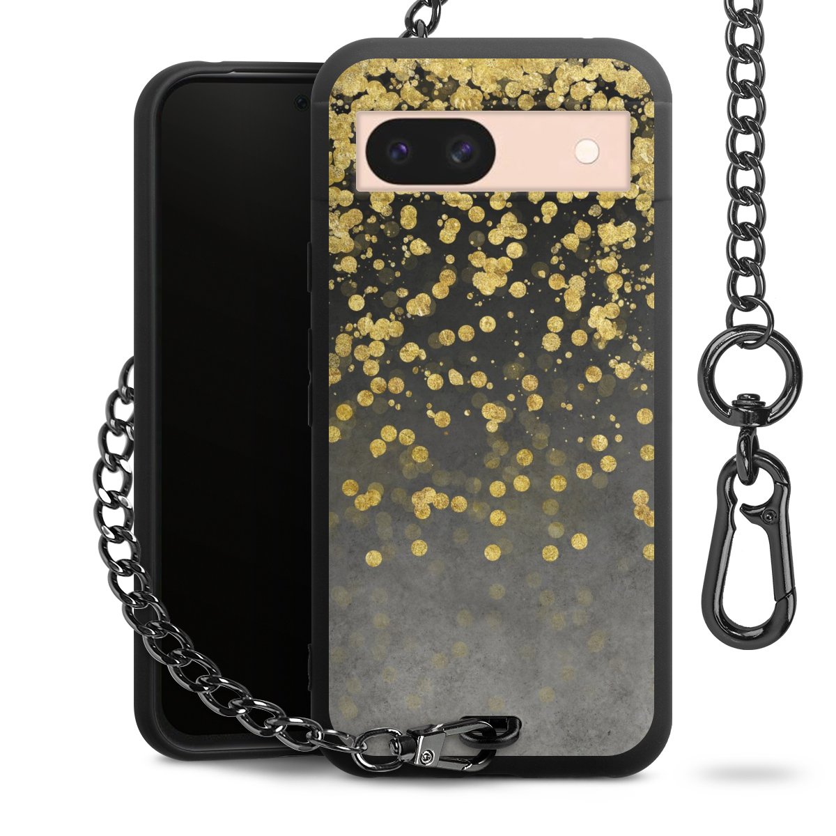 • Mattschwarze Handyhülle mit Metallkette