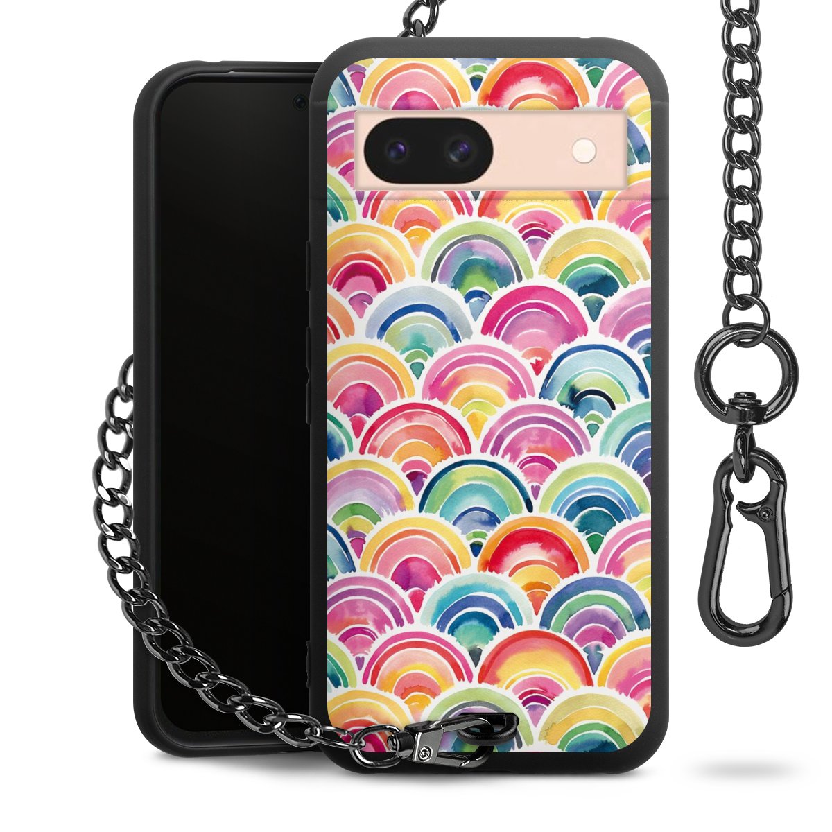 • Mattschwarze Handyhülle mit Metallkette