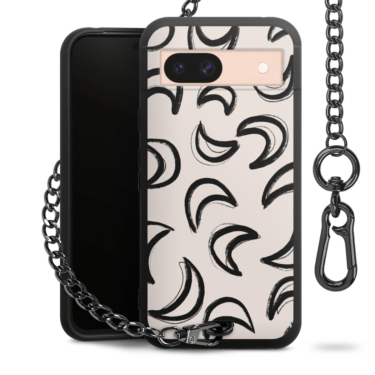 • Mattschwarze Handyhülle mit Metallkette