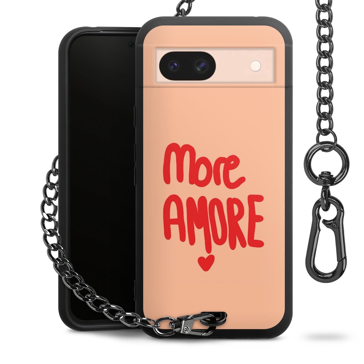 • Mattschwarze Handyhülle mit Metallkette