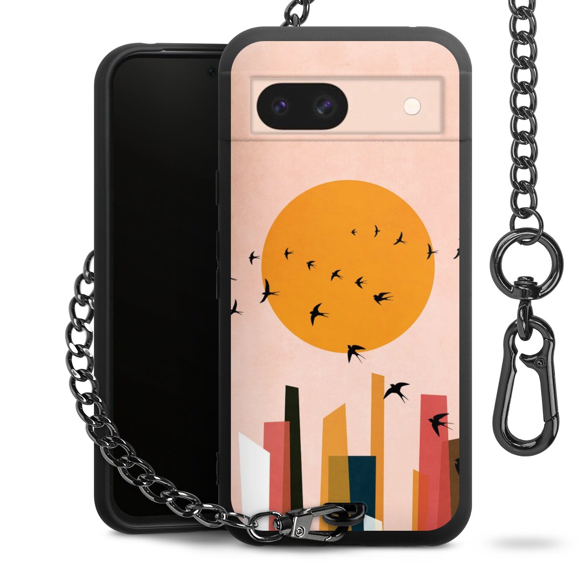 • Mattschwarze Handyhülle mit Metallkette