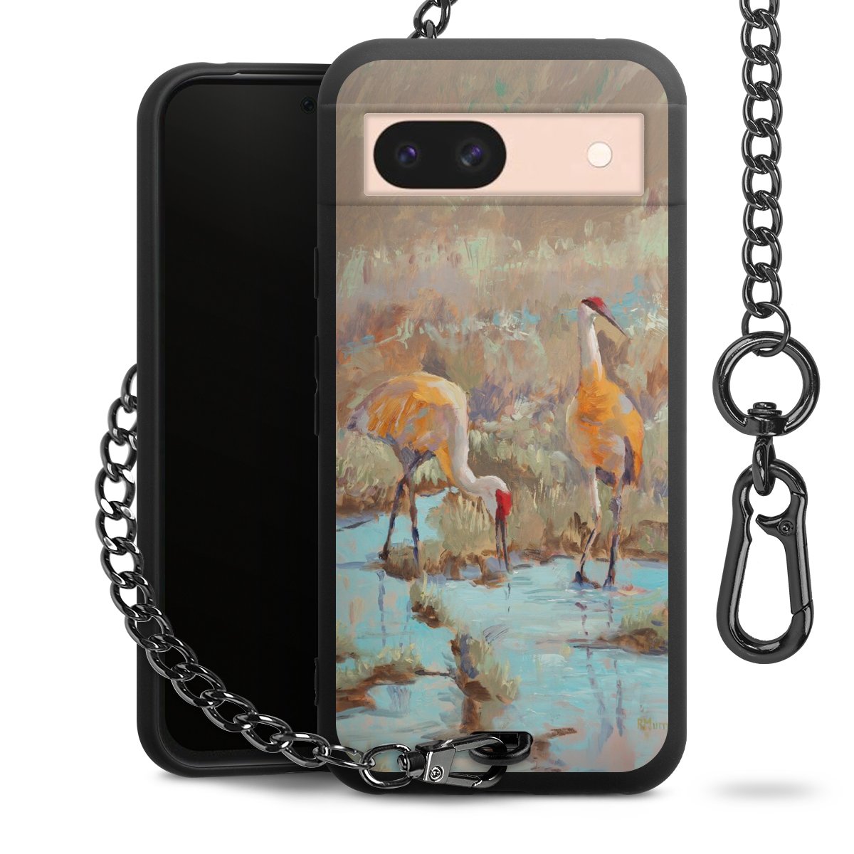 - Mattschwarze Handyhülle mit Metallkette