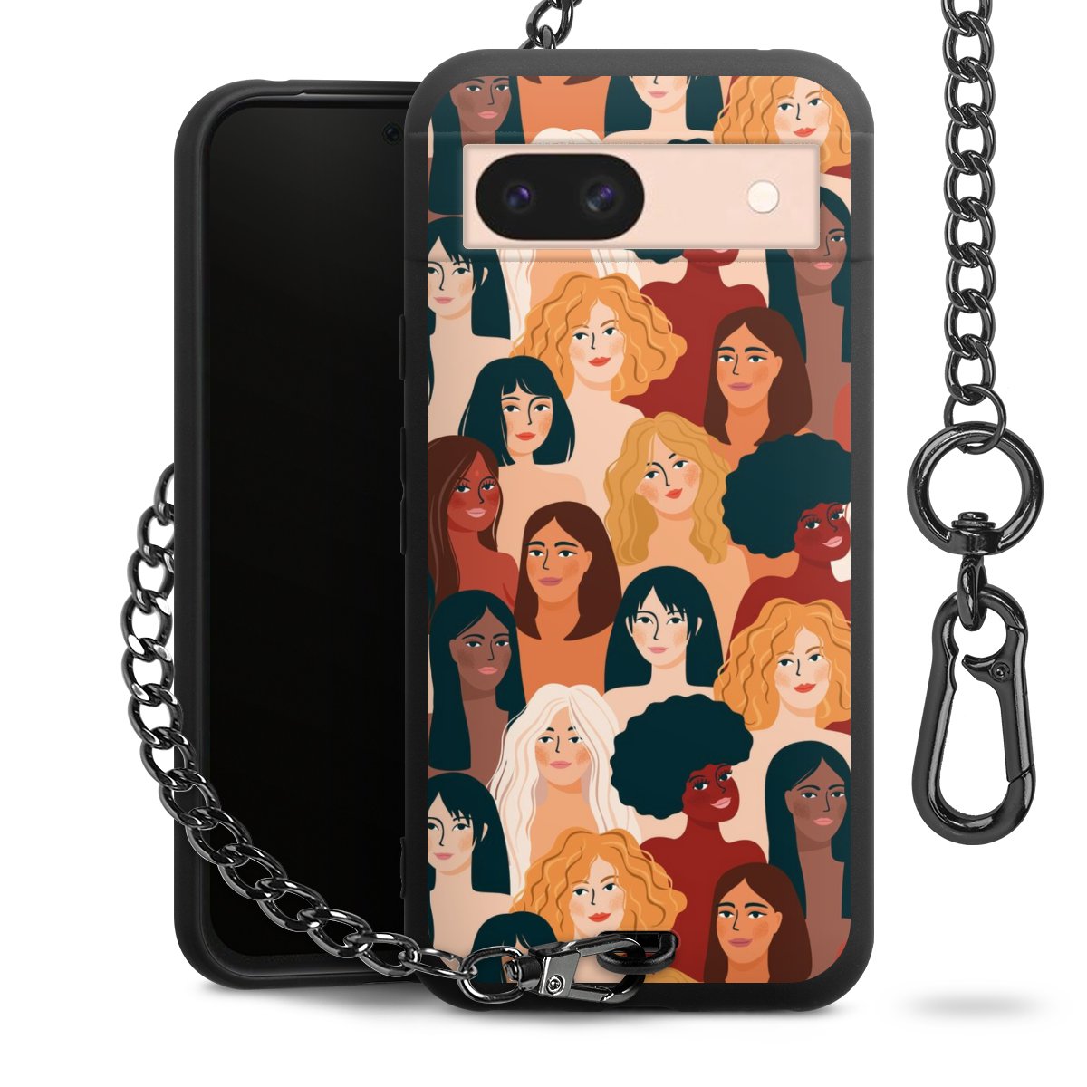 • Mattschwarze Handyhülle mit Metallkette