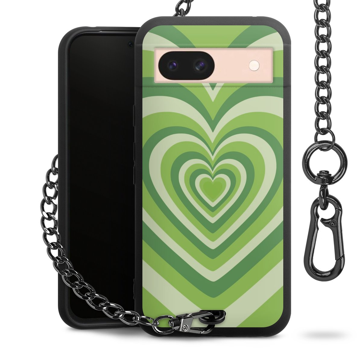 - Mattschwarze Handyhülle mit Metallkette
