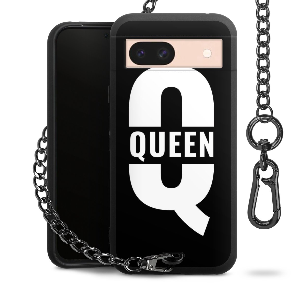 - Mattschwarze Handyhülle mit Metallkette