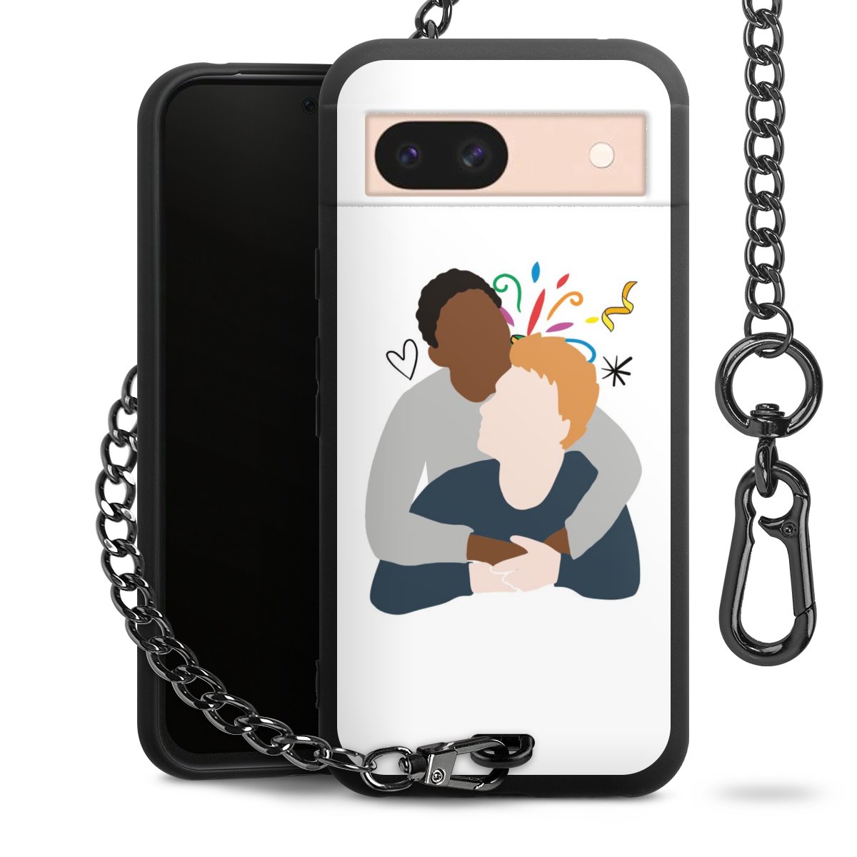 Die mattschwarze Silikon-Handyhülle besteht aus robustem TPU (thermoplastisches Polyurethan). Sie ist flexibel und schützt Dein Smartphone vor Stößen und Kratzern. Die Kette sowie der Karabinerhaken sind aus Metall in Gunmetal-Optik gefertigt. Für dieses Produkt kommen ausschließlich TÜV-geprüfte Materialien zum Einsatz.