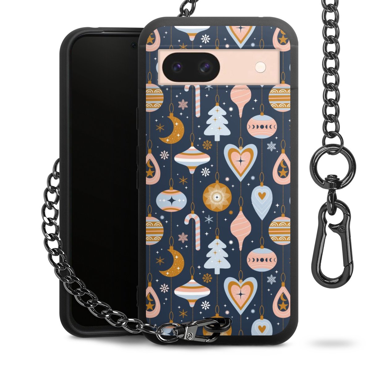 • Mattschwarze Handyhülle mit Metallkette