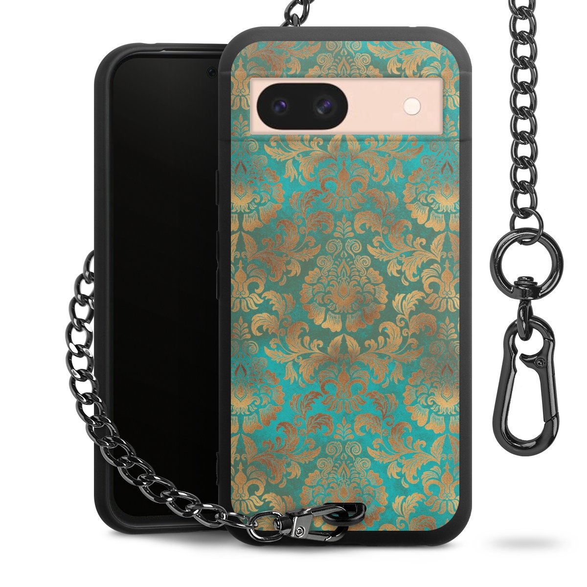 Die mattschwarze Silikon-Handyhülle besteht aus robustem TPU (thermoplastisches Polyurethan). Sie ist flexibel und schützt Dein Smartphone vor Stößen und Kratzern. Die Kette sowie der Karabinerhaken sind aus Metall in Gunmetal-Optik gefertigt. Für dieses Produkt kommen ausschließlich TÜV-geprüfte Materialien zum Einsatz.