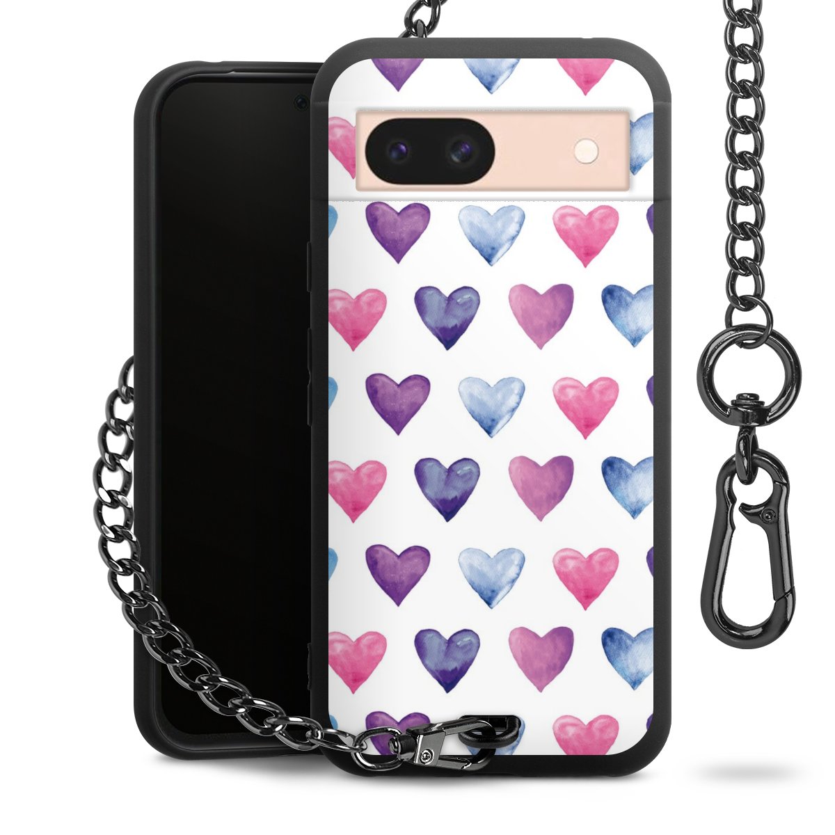 - Mattschwarze Handyhülle mit Metallkette