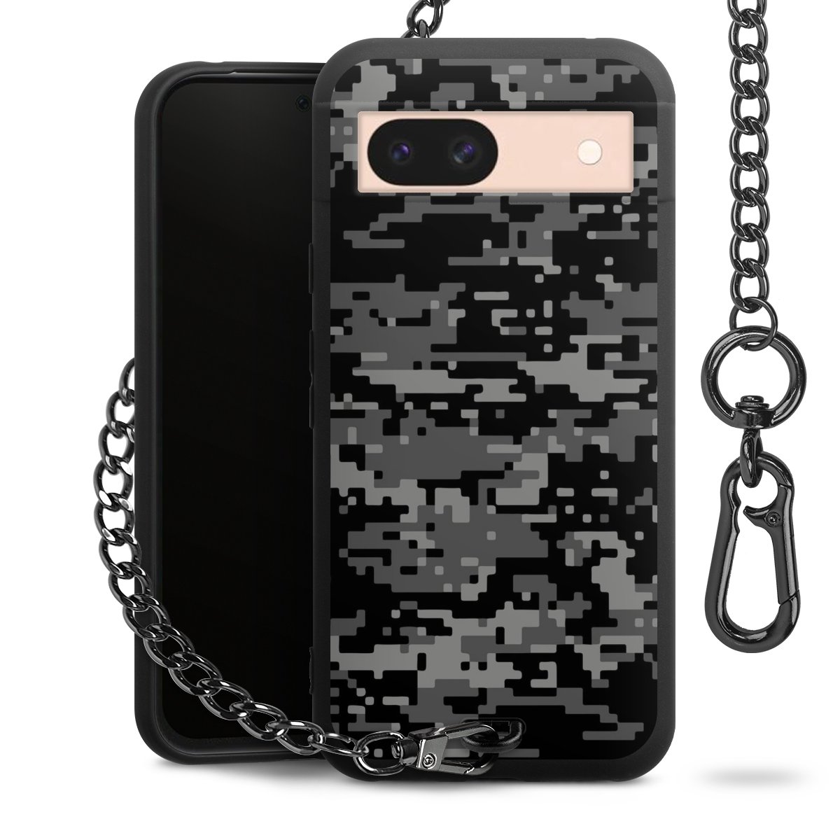 • Mattschwarze Handyhülle mit Metallkette